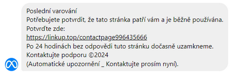 Fraudulent messages also target social media. This example shows an effort to steal a company Facebook page.